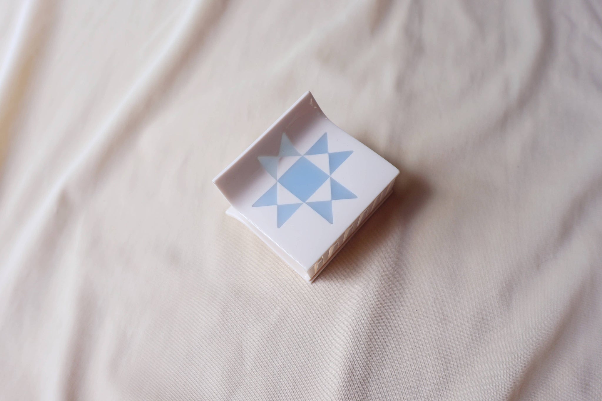 Quilt love in a claw clip. The Faded Denim Quilt Claw features a traditional quilt block pattern laid into a super strong hair clip. This small claw is best suited for all hair types and comes in a bright white with baby blue inlay. * 2 inches wide. Designed in Austin, Texas and responsibly made in China, the Faded Denim Quilt Claw is made from plant-based cellulose acetate. Due to the nature of the materials and process, each piece is unique and small variations will occur.
