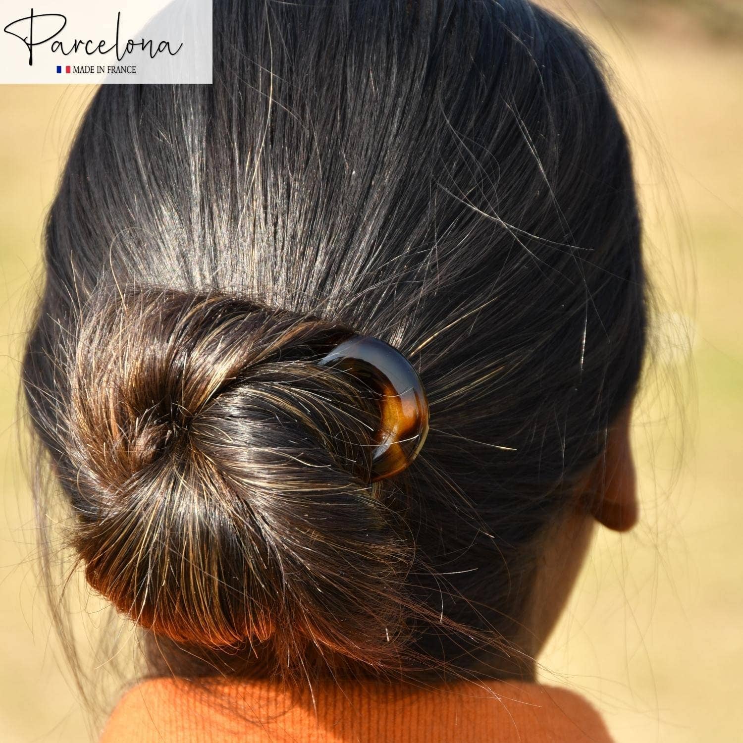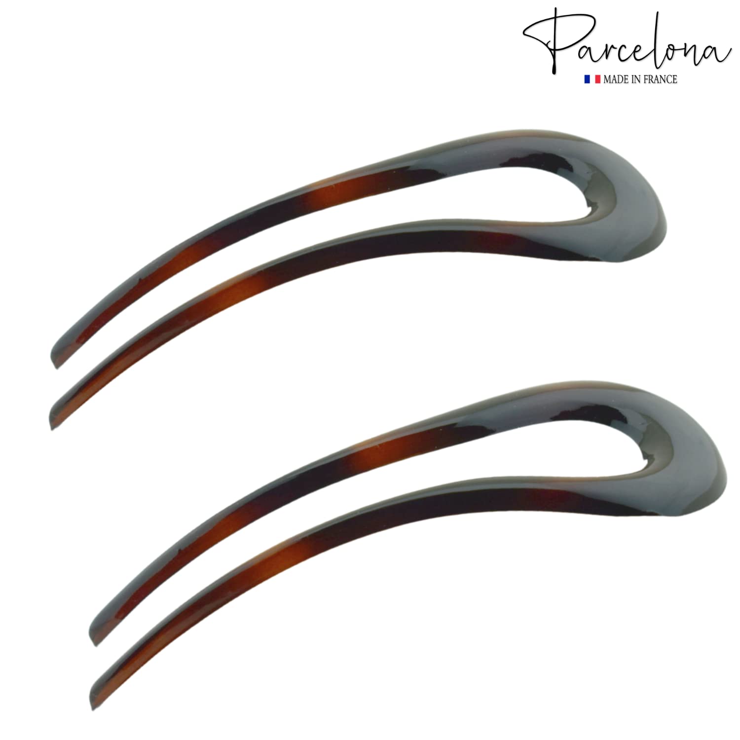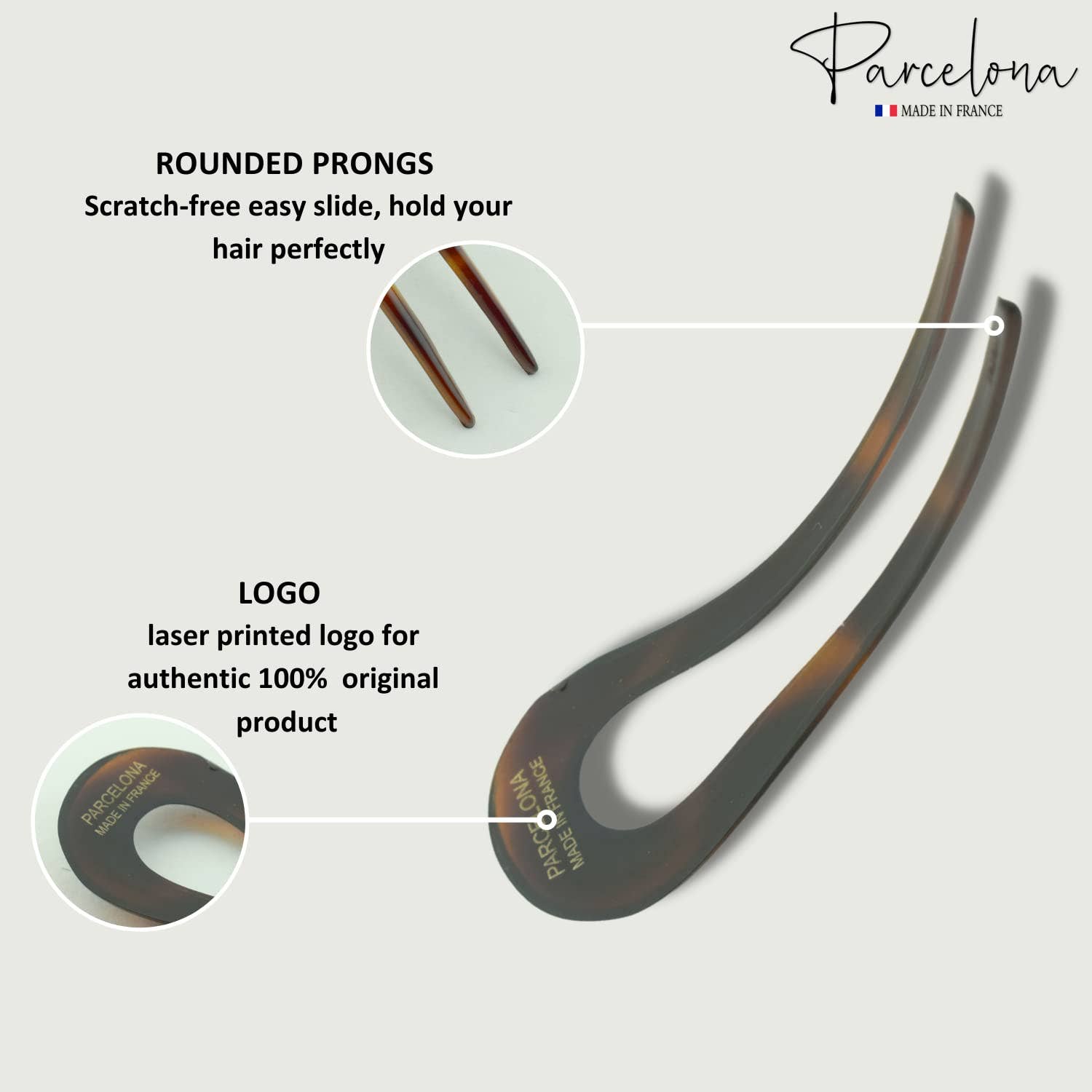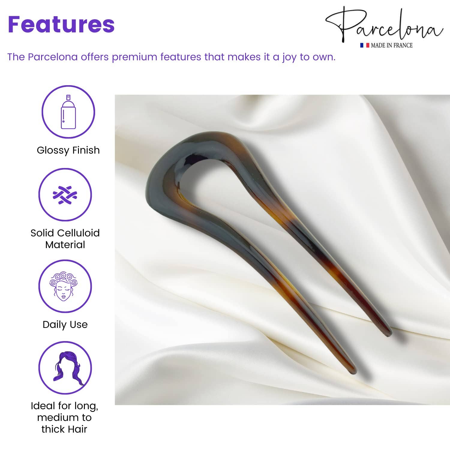 PARCELONA Our Products are made from Cellulose Acetate, The Cellulose Acetate is extracted from trees and plants, we can guarantee the quality of entire products and it will make you feel absolute satisfaction. ABOUT THE PRODUCT * The Classic French chignon hair sticks for women can help you style quickly when you are in a hurry. It is comfortable to use for professional hair styling or at home without pulling, twisting, or damaging your hair. * It is ideal for long, wavy, medium to thick hair types to create pretty French hair updo, French twists, classic low bun or side weep hairstyle with your hair. This prong design pin is very sturdy, durable, and can complement most of the hair types.