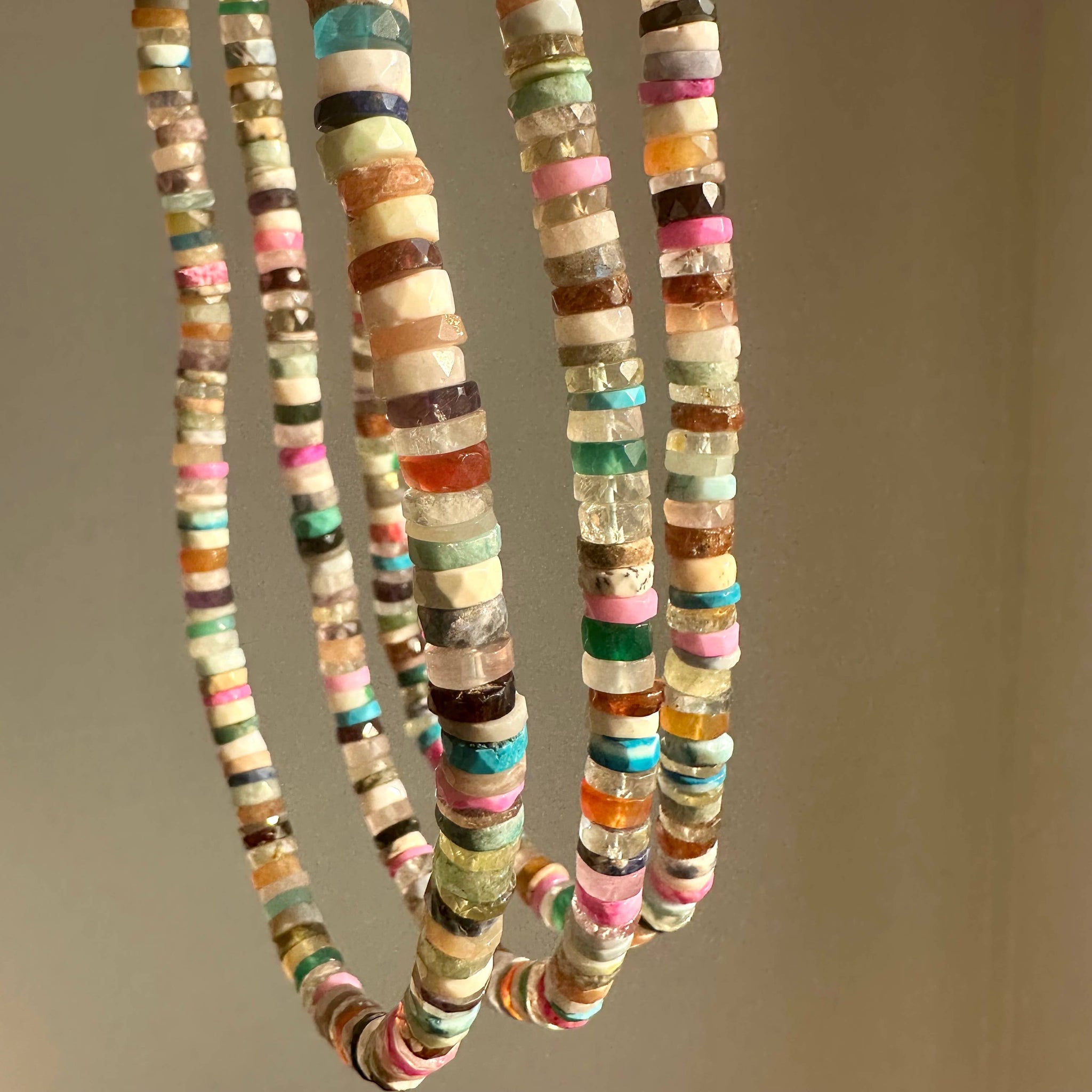 We're thrilled to introduce our stunning Gemstone Necklace, a vibrant and eye-catching Disco Necklace that your customers will love! Made with colorful, faceted gemstones, this beaded necklace adds a beautiful sparkle to any outfit and is perfect for ladies wear. * Crafted in India * 10mm faceted beads * 18K gold-plated clasp * 16" + 2" extender These beautiful gemstones are ethically sourced in small batches in Jaipur, usually directly from the stone cutter. This keeps profits in the hands of talented local artisans instead of middlemen.