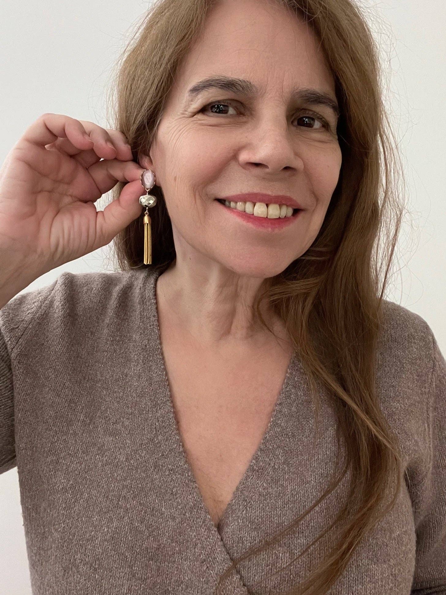 Sandrine is a Parisian, self taught jewelry designer based in New York City. Her pieces are handmade in limited numbers, with the utmost diligence and refinement. She has not particularly cared for trends and has instead focused on perfecting her own signature style. She has an incredible attention to detail and a sharp eye for color. She does not hesitate to mix gems with resin, old with new and anything in between, which make her style unique, fresh and timeless.