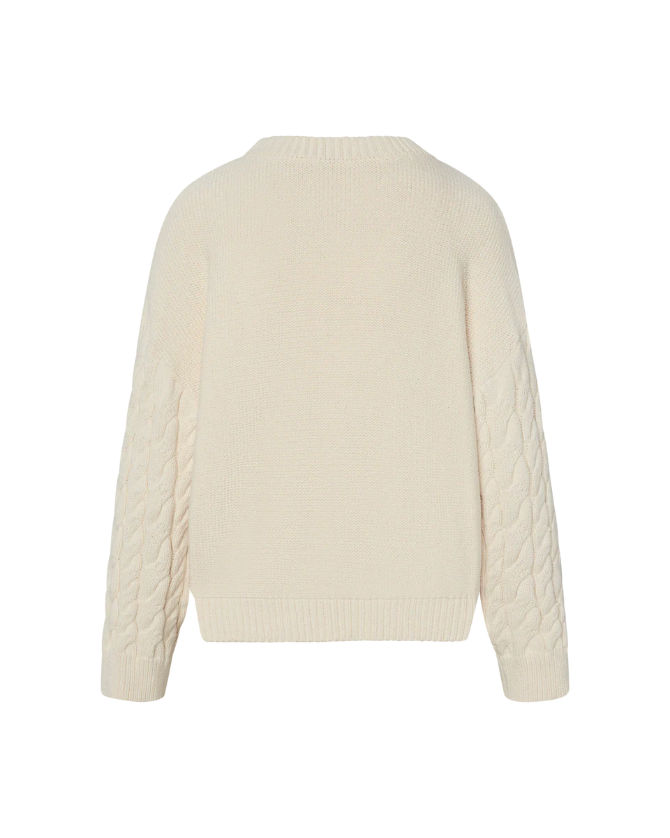 Crafted in 100% cotton, the knit features a timeless cable pattern that balances tradition with everyday wearability. The fabric is soft, breathable, and structured enough to hold its shape through the years.