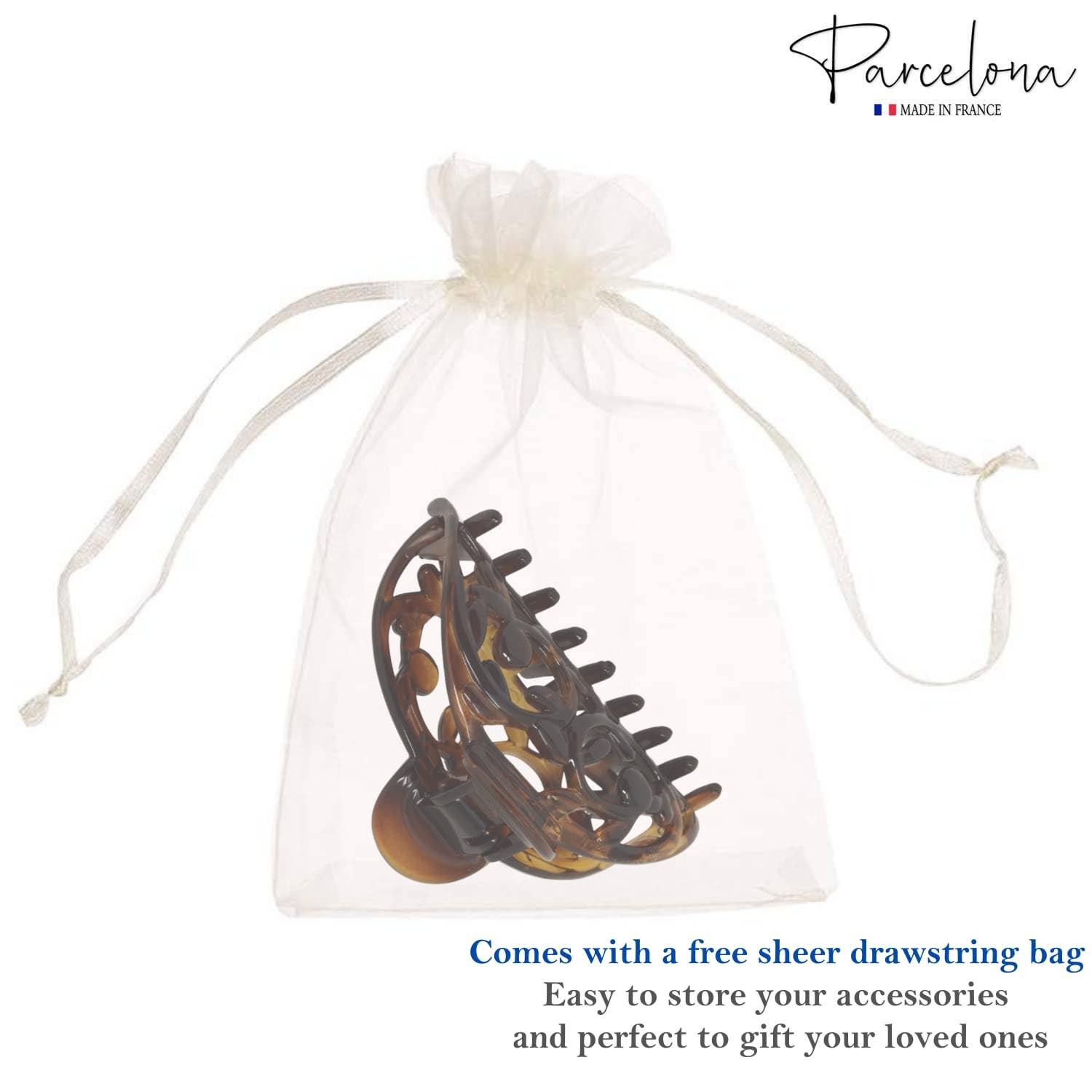 Parcelona is a woman-owned brand that creates authentic quality french hair accessories with a focus on affordability. Their production is based in Eastern France. They use cellulose acetate as their main material, a plant based plastic alternative that is both more durable and better for the environment than plastic.
