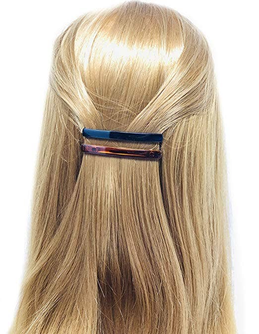 PARCELONA Our Products are made from Cellulose Acetate, The Cellulose Acetate is extracted from trees and plants, we can guarantee the quality of entire products and it will make you feel absolute satisfaction. ABOUT THE PRODUCT Made in France; Hair accessories by Parcelona. Comfortable sliding closure clasp Cellulose acetate durable everlasting luxurious finish; suitable for short, fine, thin hair types. Create up-do, half hair up-do or clip a section of thick hair; non-slippery, effortless and convenient SPECIFICATION: Size: Approx. 2.25 inch long; 6 cm. PACKAGE INCLUDES: 4 x Hair Barrettes.