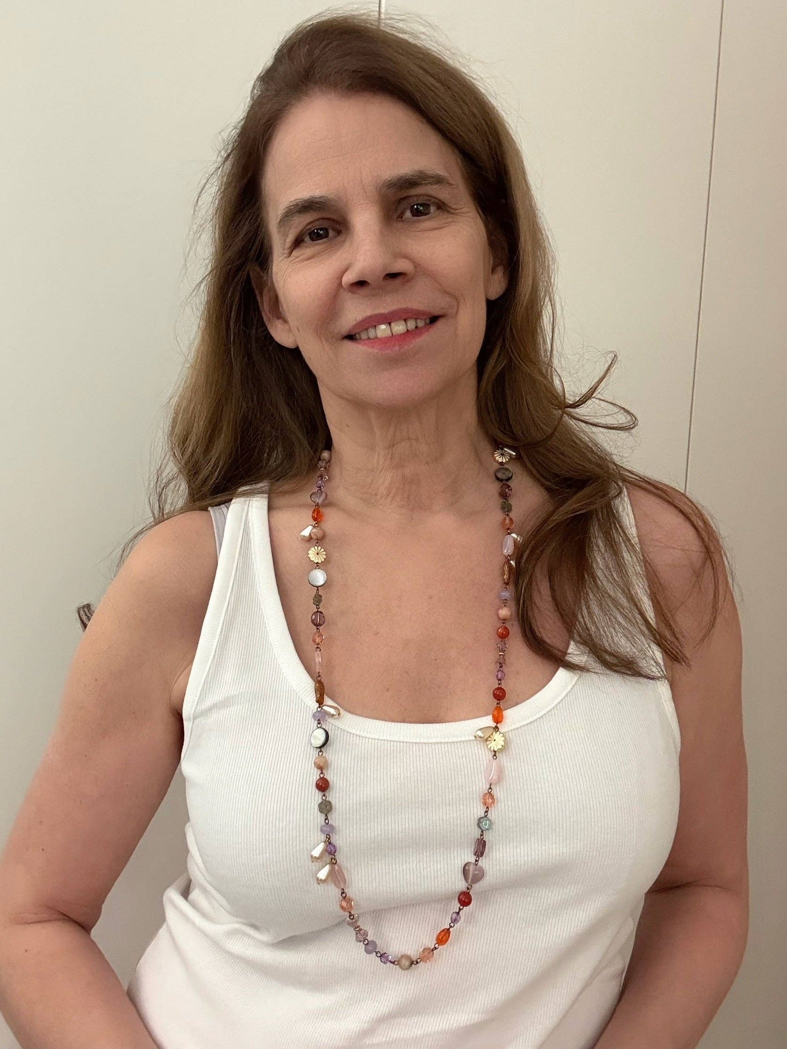 Sandrine is a Parisian, self taught jewelry designer based in New York City. Her pieces are handmade in limited numbers, with the utmost diligence and refinement. She has not particularly cared for trends and has instead focused on perfecting her own signature style. She has an incredible attention to detail and a sharp eye for color. She does not hesitate to mix gems with resin, old with new and anything in between, which make her style unique, fresh and timeless.