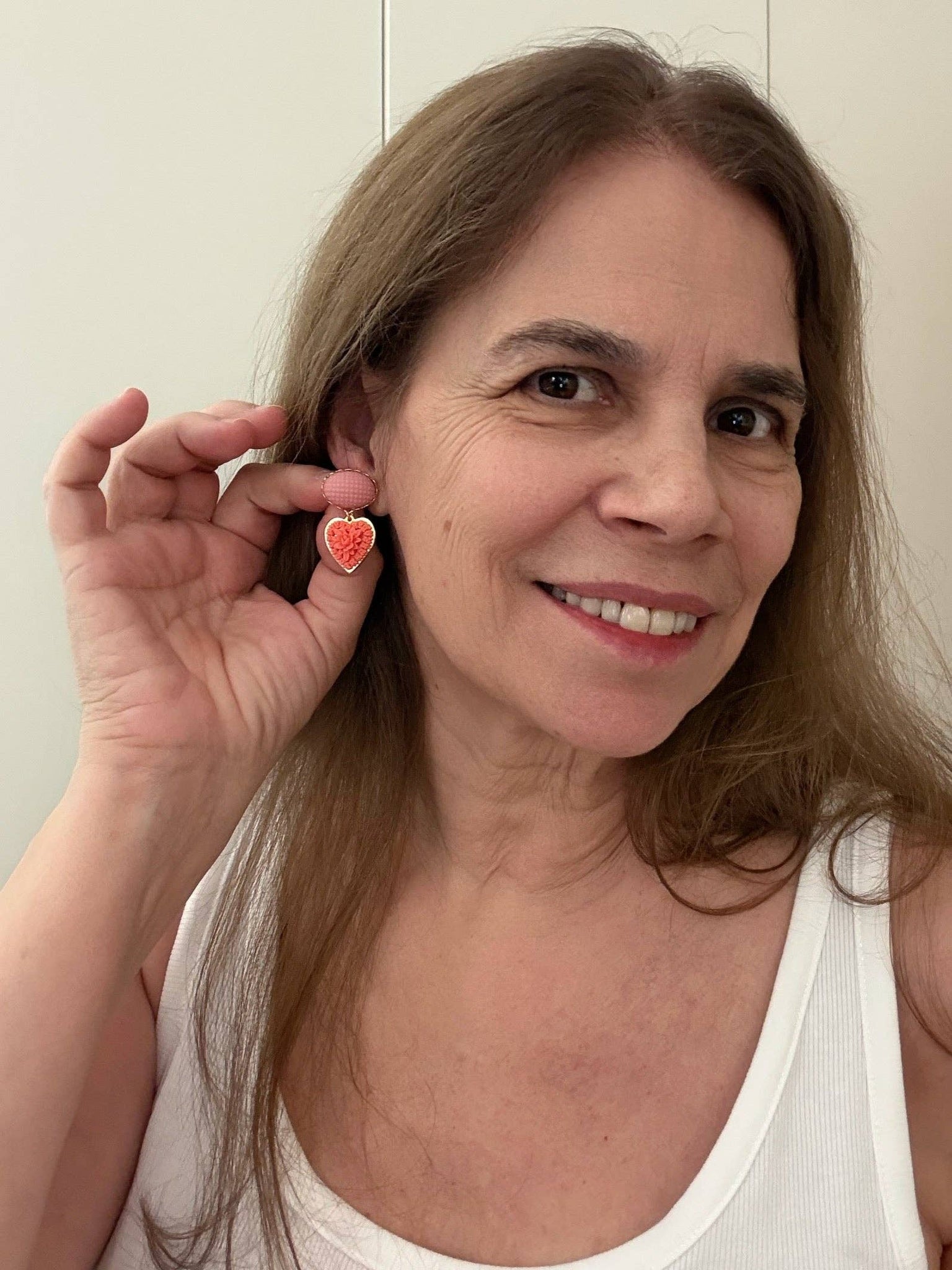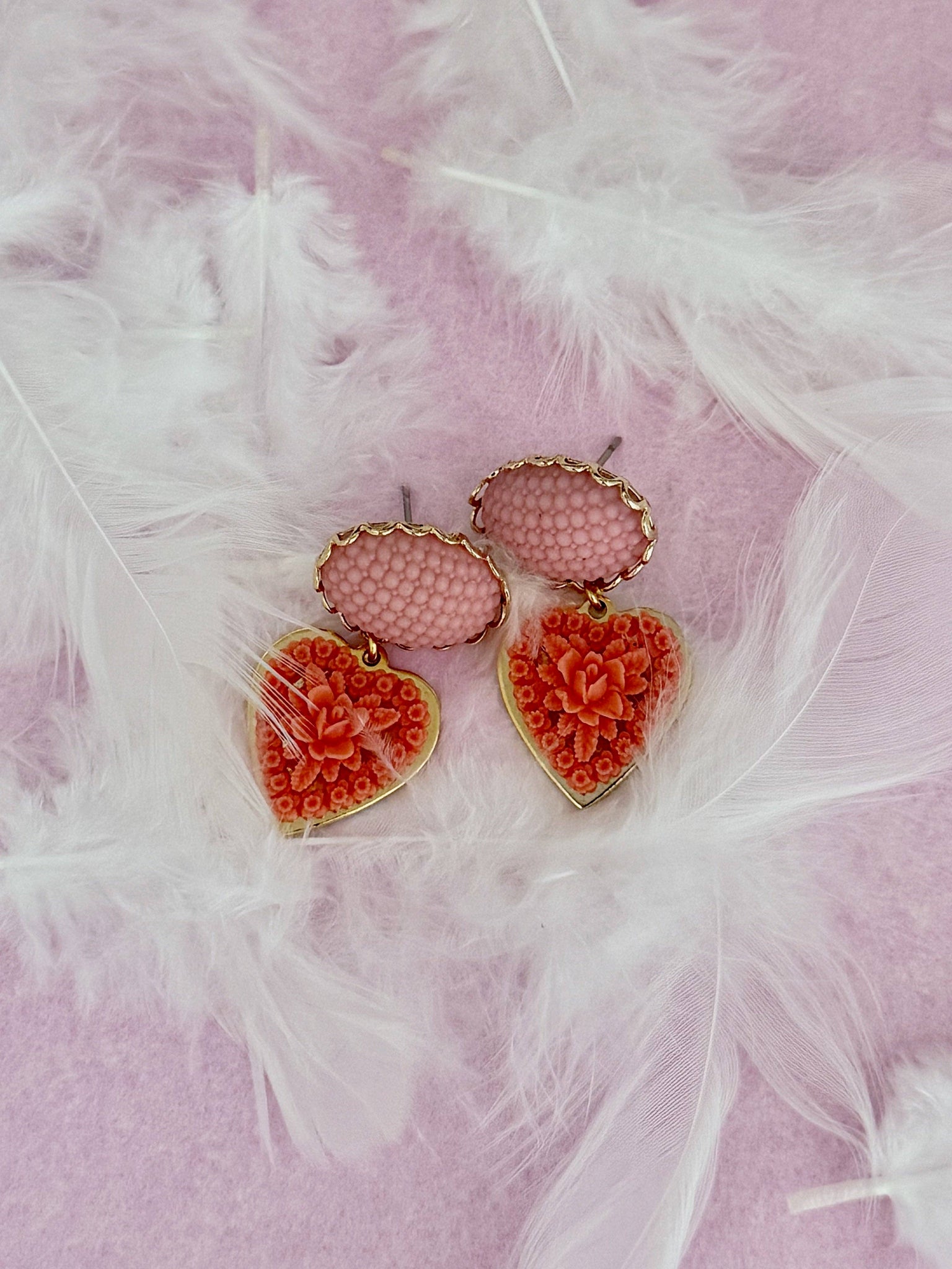 - Vintage glass cabochon, acrylic heart * Gold plated over brass * 3/4"L * Handmade on NYC
